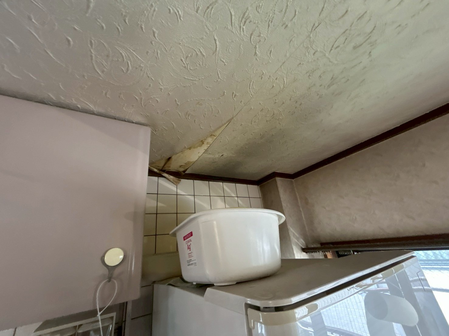 この写真ではベランダの床部分のシートが浮いてしまっており、雨漏りしている位置的にその上部にあたるここから雨漏りしている可能性もあります。