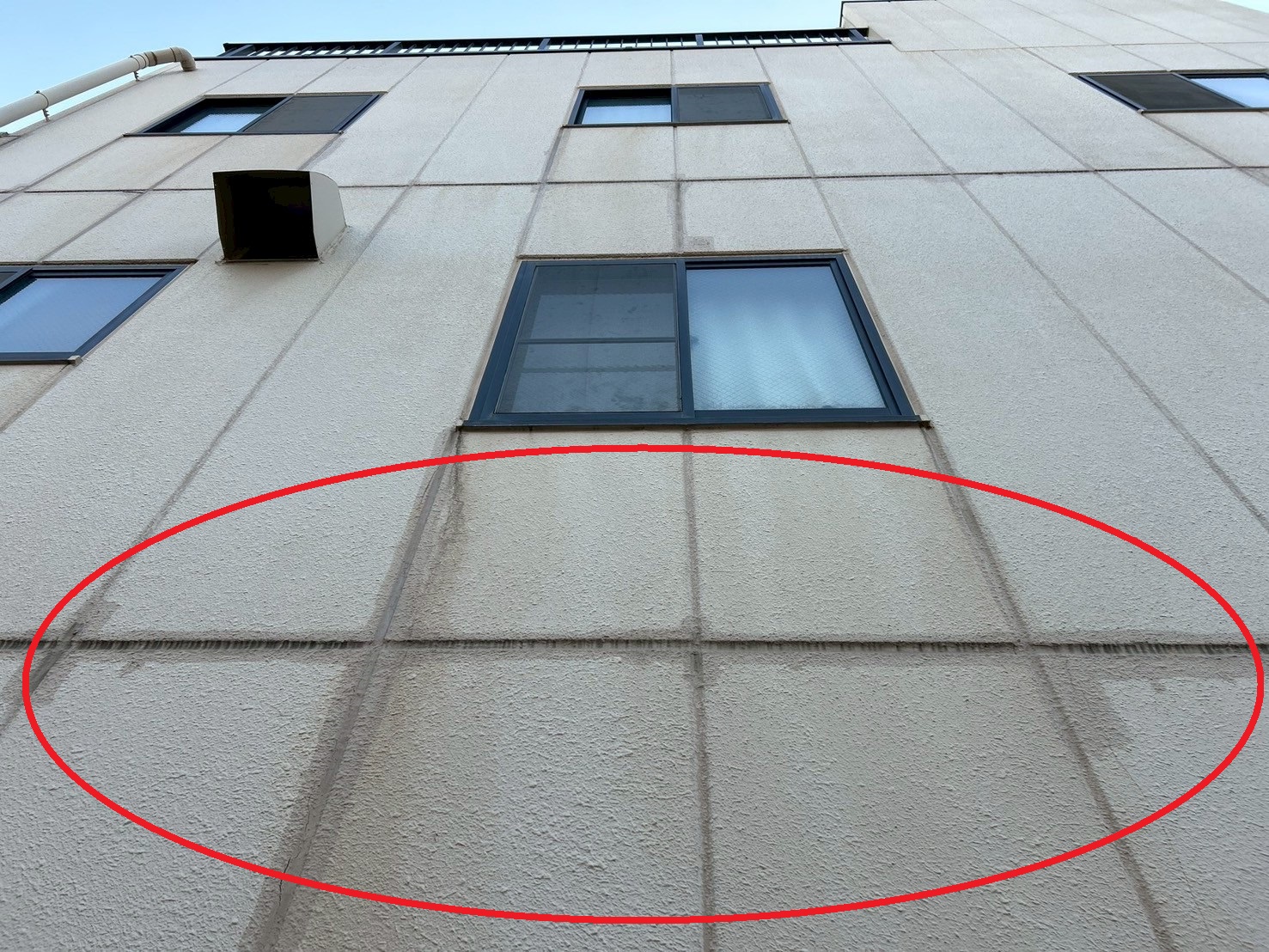 こちらの写真の目地の色が変わっている部分はコーキングが切れて内部に水が回っている可能性が高い箇所です
