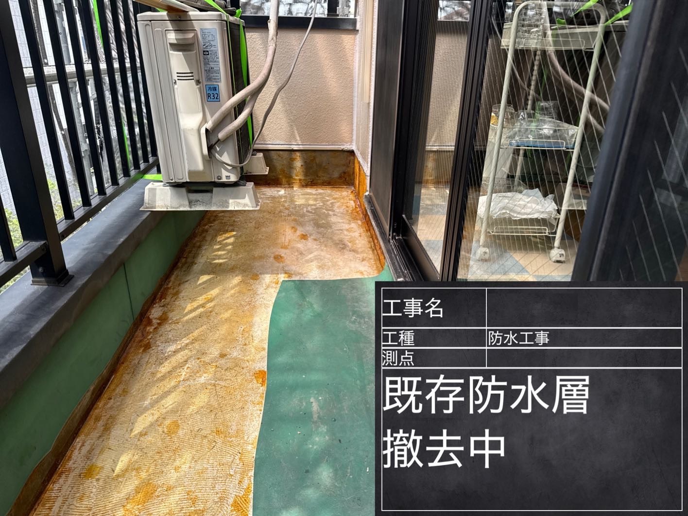 ベランダは防水層が浮いていた部分のみ撤去して、新しい防水を施工しました。