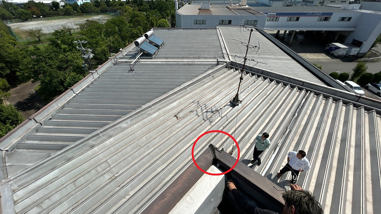 藤前干潟で有名な場所の近くで国道23号線沿いの3階建ての資材センターにて雨漏りがするとのご相談でした。