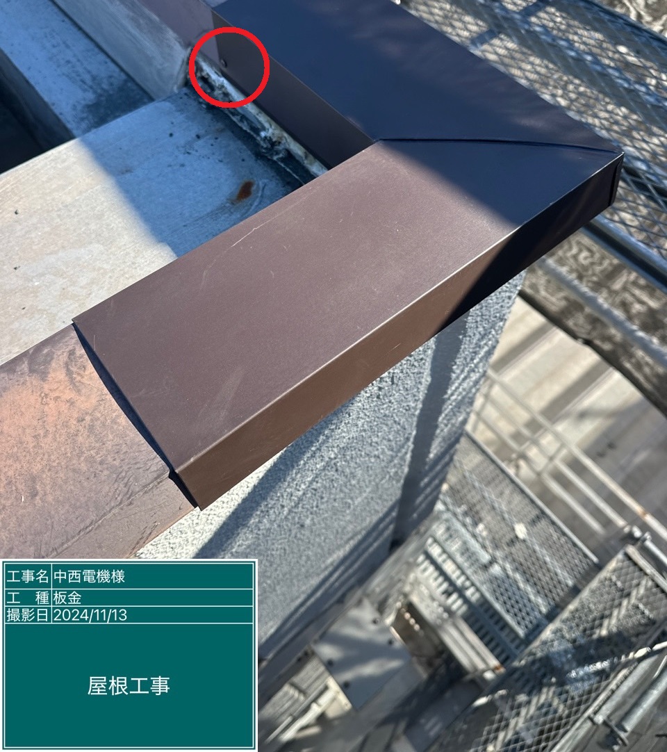 また、お客様の建物は築年数的に少し古いものであるため今は主流ではない笠木の天端の上からビスを打つ方法で施工されていました。