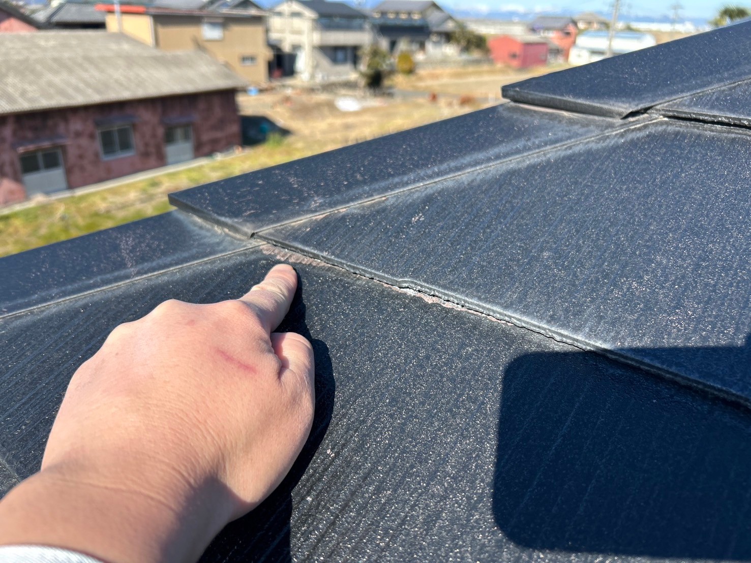 お客様が数年前に太陽光パネルを設置された際、太陽光パネル業者が屋根の塗装も格安で請け負ってくれたとのことだったのですが、塗装がすけすけの状態でした。